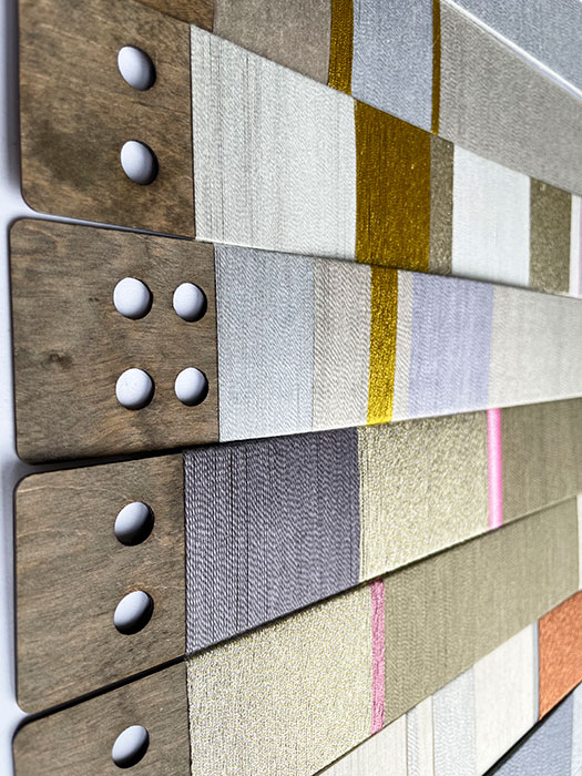 ‘Code’ is a hand wrapped textile surface, using digital technologies and handmaking, created as an on-going process for a coded interface.